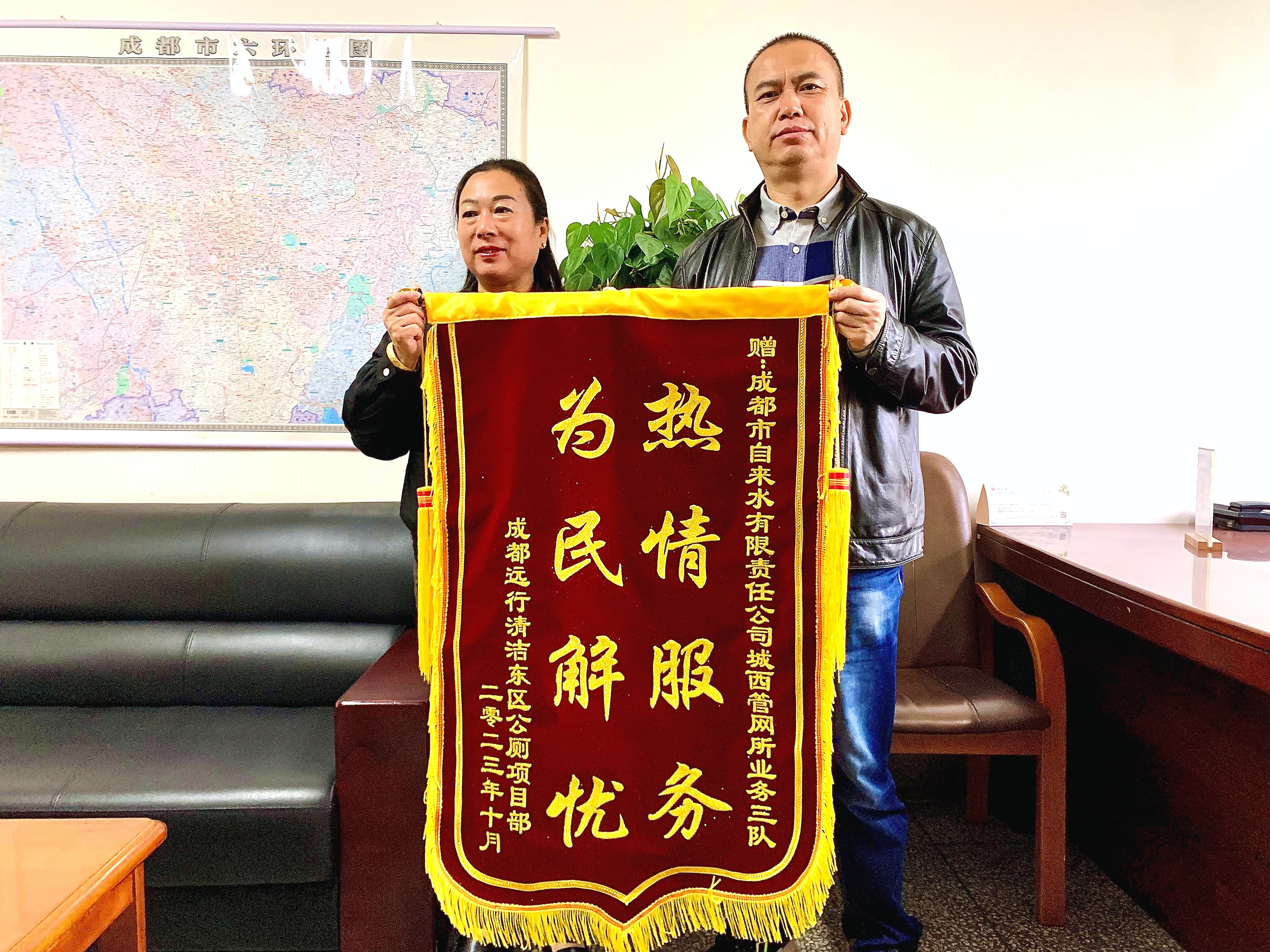 10月30日,自来水公司城西管网所收到成都远行清洁东区公厕项目部赠送的锦旗,对公司快速响应、及时解决公厕漏水问题,为民提供优质暖心服务表示衷心感谢。