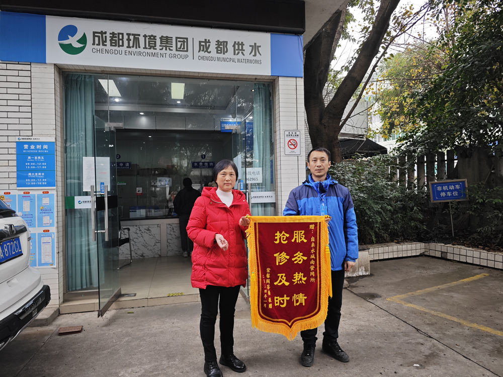2月23日,自来水公司收到中和街道成仁路柳荫街用户送来的锦旗,对城南管网所快速修复漏水管道高效解决用水问题的优质服务表示感谢。