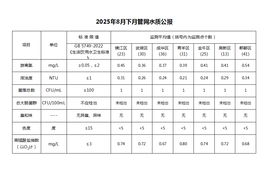 2025年8月下月管网水质公报