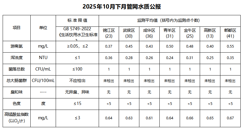 2025年10月下月管网水质公报